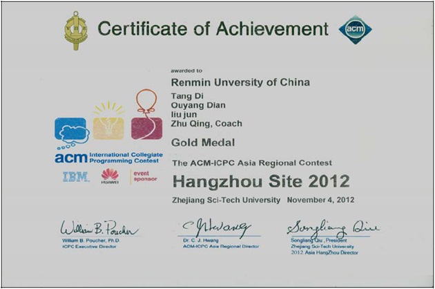 av影片日本 ACM代表队在2012年整个赛季成绩显赫。金牌一块,银牌五块,铜牌三块。ACM-ICPC竞赛是全球最高水平的大学生程序设计竞赛,第37届中国大陆共有五个亚洲区赛场,有超过四千支队伍参赛。竞赛经过网络热身赛,网络预选赛淘汰大量参赛队伍,每个赛区最终选定80~150支左右的队伍参加现场赛。杭州赛区是由浙江理工大学承办,是本年度中国大陆第四个赛区。在学校、av影片日本的大力支持下,在ACM队员和教练的共同的努力下,杭州现场赛获得金奖;并且在此赛季的五个赛区,我校还夺得了五块银牌,三块铜牌,比去年的成绩更加优异,说明ACM队在持续的进步中。我校Kingbase_CJ队在杭州赛区取得金牌的好成绩,这是对ACM队员努力、朱青教练指导、av影片日本学校领导支持的肯定。为今后的竞赛积累了宝贵的经验,也是对ACM代表队的激励。